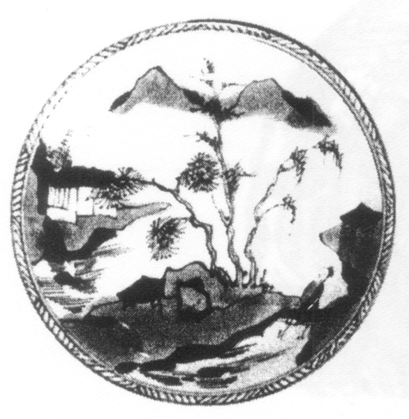 | 5c decoratie | inwendig: Chinees landschap onderglazuur blauw |