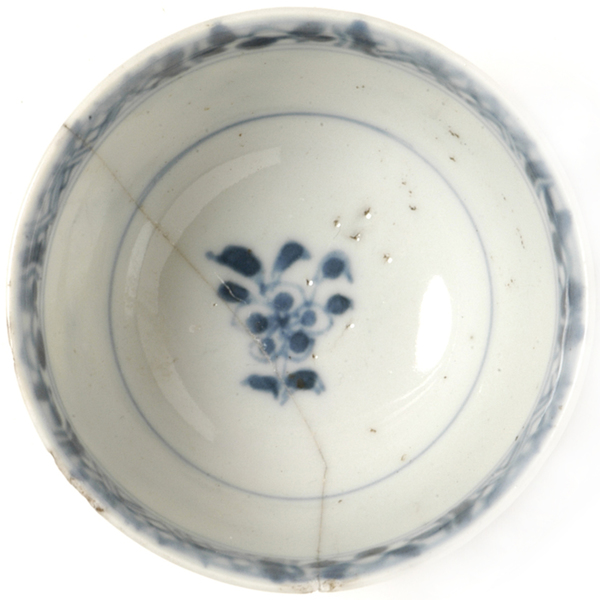 | 5c decoratie | blauwe beschildering onderglazuur blauw |