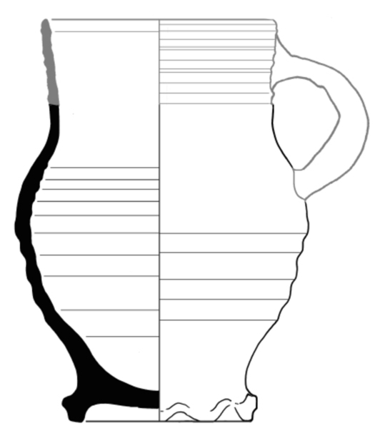 | 4b | biconische kan met buikknik met ribbel en hoge hals met rechte rand, standring |