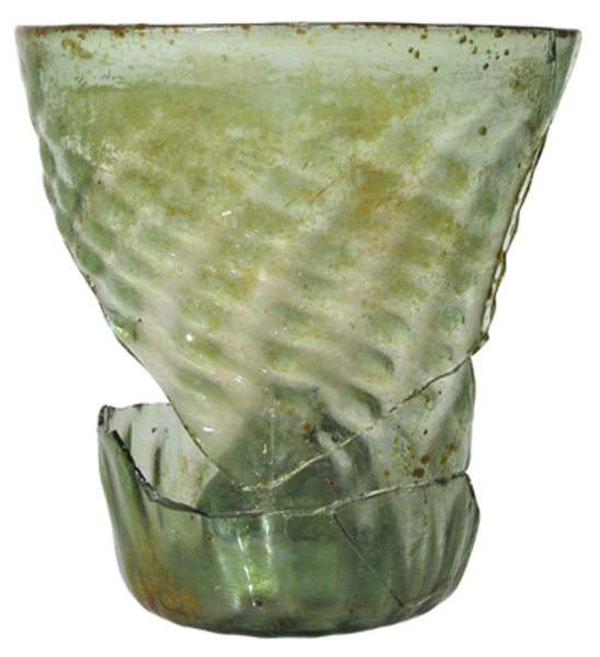 | 4b vorm | getailleerde beker met gekruist ribbelpatroon, opgestoken bodem met pontilmerk |