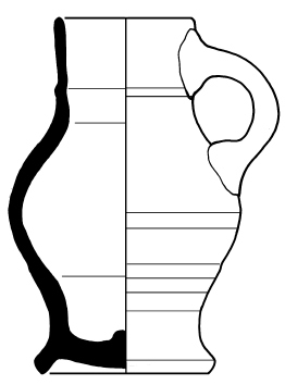 | 4b | bolle drinkkan met hoge schouder en cilindrische hals, ribben op halsaanzet, standring |
