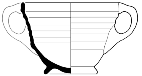 | 4b vorm | diepe kop met knik bodem-wand, iets uitgebogen wand met kleine kraagrand, standring |