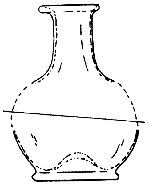 | 4b | kleine bolvormige fles met lange hals en uitstaande, verdikte of omgeslagen lip, op standvoet |