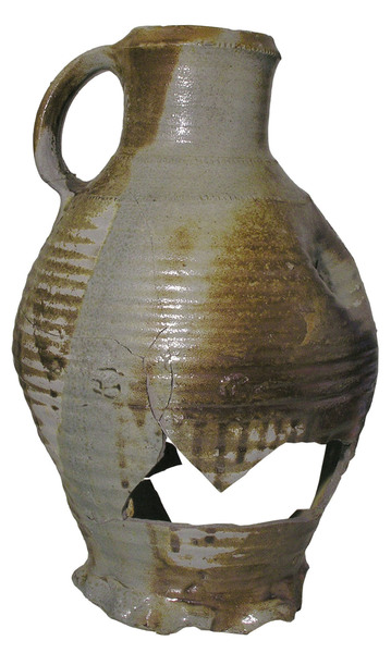 | 4b | bolle kan met hoge iets uitlopende hals en naar binnen gebogen lip, ribbel op halsaanzet, standring |