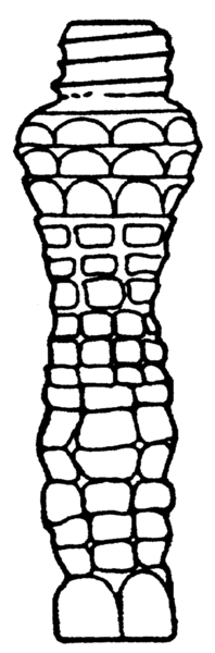 | 4b | dikwandige ronde parfumfles met platte zijden en lange hals, op voet, met geslepen facetten |
