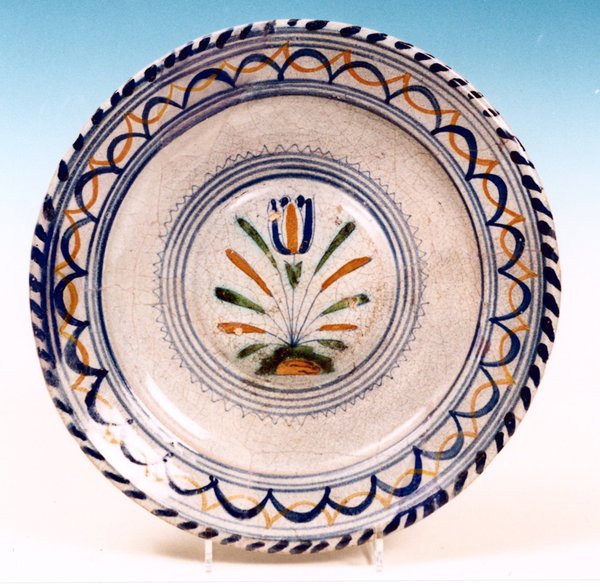 | 5c decoratie | polychrome beschildering, spiegel: een tulp binnen cirkels; vlag: boogjesfries en kabelrand inwendig: polychroom |