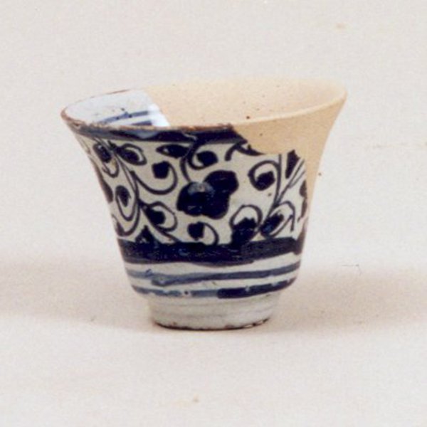 | 5c | blauw op wit beschildering, versiering à la porcellan, bloemfries blauw |