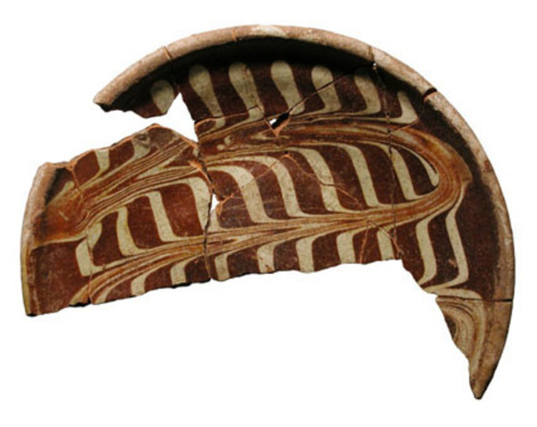 | 5a baksel | roodbakkend aardewerk , met slibversiering |