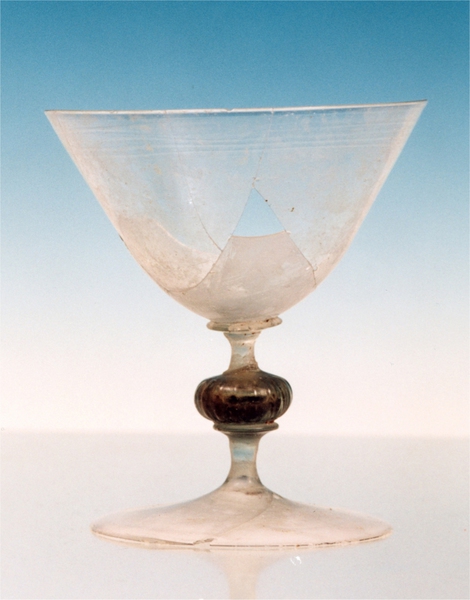 | 4b | cilindrisch, trechtervormig of komvormig kelkglas met of zonder afgeronde bodem (ook met verticaal ribbenpatroon) met geribde holle nodus- of balusterstam, met één of meer schijfjes, schijfvormige voet met pontilmerk |