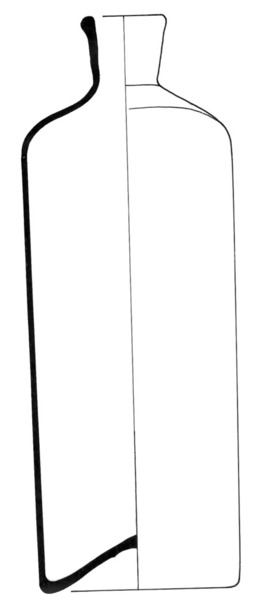 | 4b | hoge vierzijdige fles, groter dan 13 cm, met korte hals, standvlak op licht opgestoken bodem met pontilmerk |