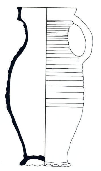 | 4b | kan met afgeronde buik overgaand in hals met zware manchetrand, standring |