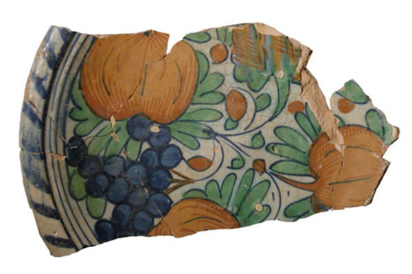 | 5c | spiegel: fruit en ranken in groen, blauw, oranje en paars op wit; vlag: cirkels en kabelrand in blauw op wit inwendig: polychroom |