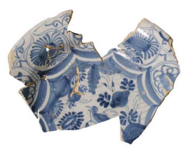| 5c decoratie | vlag: vlakverdeling met boeddhistische en taoïstische symbolen; spiegel: vogel op rots in tuinvoorstelling blauw |
