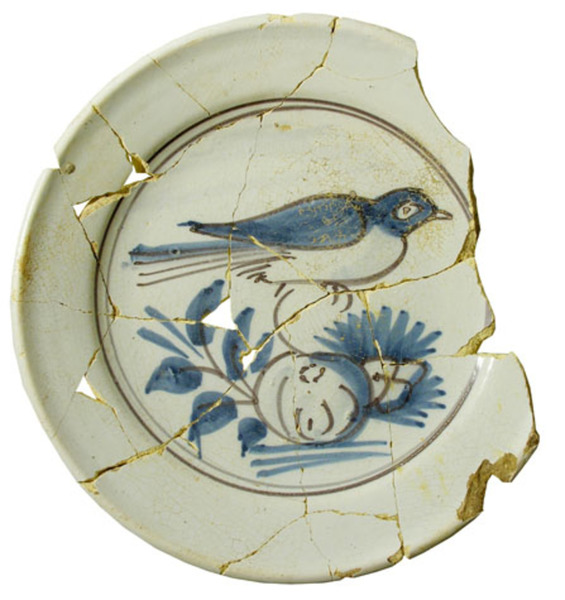 | 5c decoratie | fruitstilleven met vogel blauw en paars |