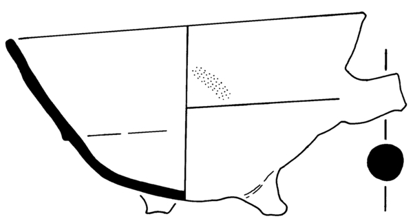 | 4b | vierkante vuurtest met scherpe knik bodem-wand en iets uitwijkende wand, afgeronde rand, poten |