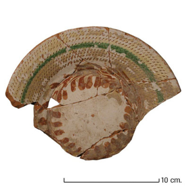 | 5a baksel | roodbakkend aardewerk , met slibversiering |