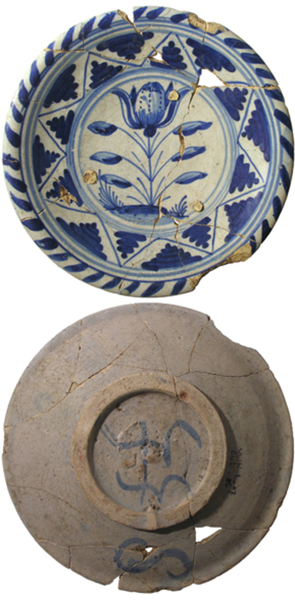 | 5a | majolica uit de Nederlanden, rossigbakkend, rossig-gele scherf |