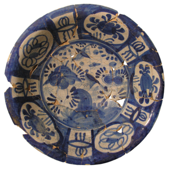 | 5a baksel | majolica uit de Nederlanden , rossigbakkend , rossig-gele scherf |