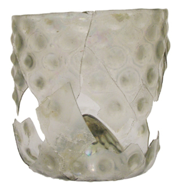 | 4b | cilindrische beker met knobbelpatroon of combinatie knobbel-netwerkpatroon, opgestoken bodem met pontilmerk, zonder noppootjes |