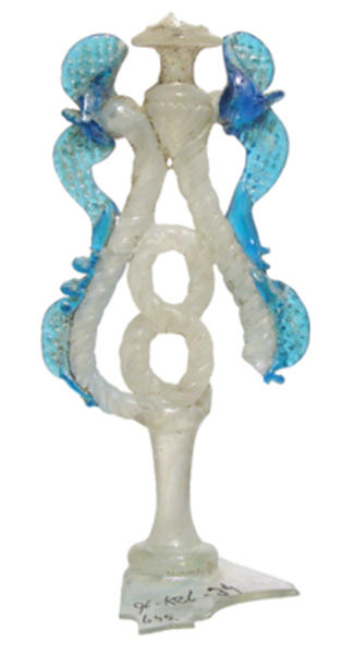 | 4b | trechtervormig kelkglas met of zonder afgeronde bodem, met uit getordeerde draden opgebouwde stam in een dubbele lus, ook met een achtvorm en met vleugels, schijfvormige voet met pontilmerk |