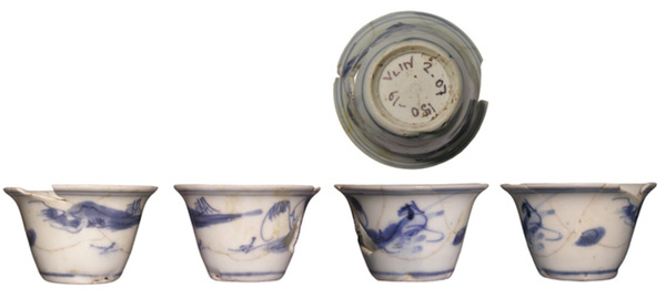 | 5c | uitwendig: landschapje onderglazuur blauw |