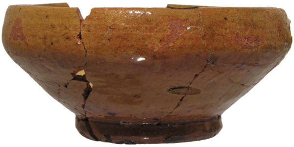 | 5a baksel | roodbakkend aardewerk , met ijzeroxide spikkels |