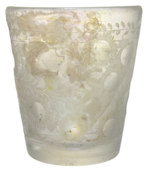 | 4b vorm | dikwandige conische beker, ook met radgravure, verdikte bodem, standvlak met (eventueel weggeslepen) pontilmerk |
