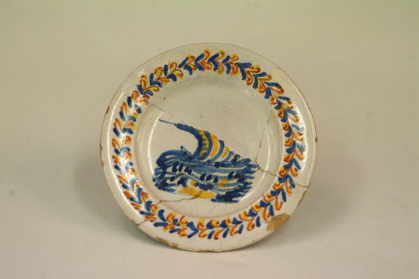 | 5c | vlag: aigretterand in geel, blauw en oker; spiegel: galeischip polychroom |