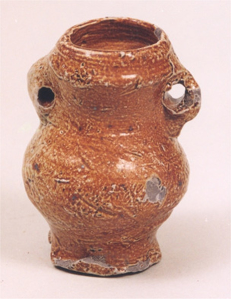 | 5d diversen | gespikkelde bruine engobe en dik zout-glazuur |