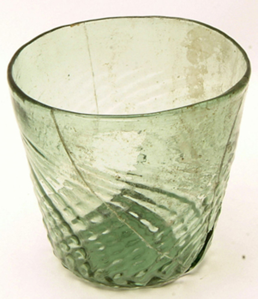 | 4b vorm | conische beker met gekruist ribbelpatroon, opgestoken bodem met pontilmerk |
