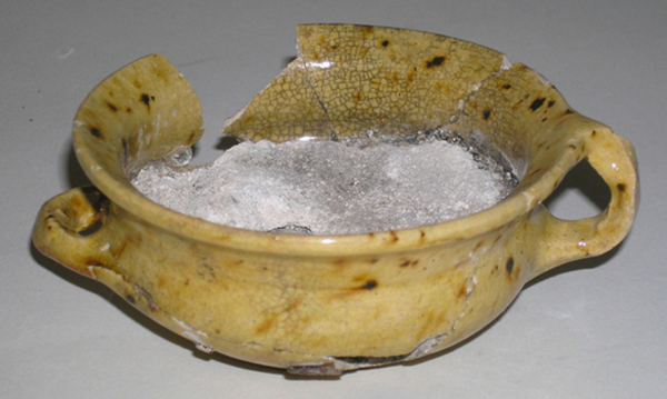 | 5d diversen | bruine spikkels; witte substantie als inhoud, gebruikt als zalfpot? |