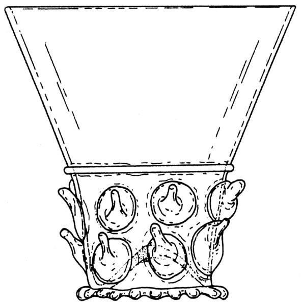 | 4b | berkemeier met conische cuppa die op de overgang naar de conische of cilindrische schacht met draad is afgezet, met twee of meer verspringende horizontale rijen van opgerichte puntnoppen, ook patroonvorm, opgestoken bodem met pontilmerk, geknepen voetring |