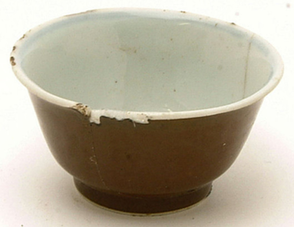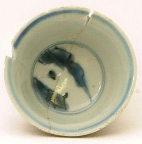 | 5c | inwendig: blauw op wit: landschapje; uitwendig: bruin onderglazuur blauw, bruin |