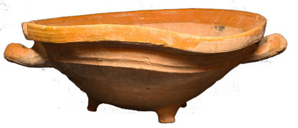 | 4b | wijde ronde test/ kooltjespan met platte zijde, knik in wand, uitstaande (driehoekig) verdikte rand, poten |