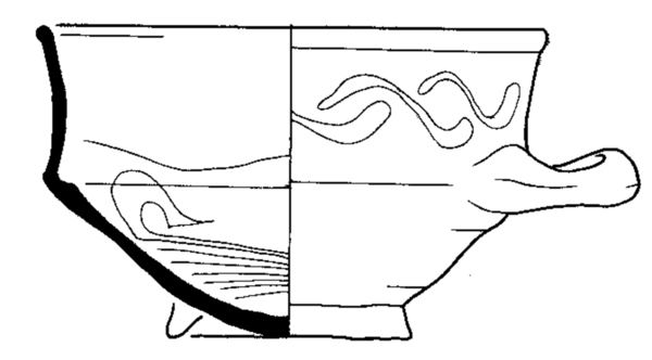 | 4b | kop met scherpe knik bodem-wand, hoge wand, standring |