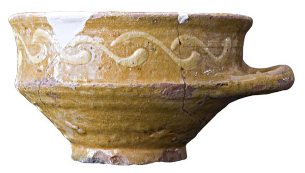 | 5c decoratie | inwendig gemarmerd met gele slib, uitwendig gele slibhaaltjes (ringeloor) |