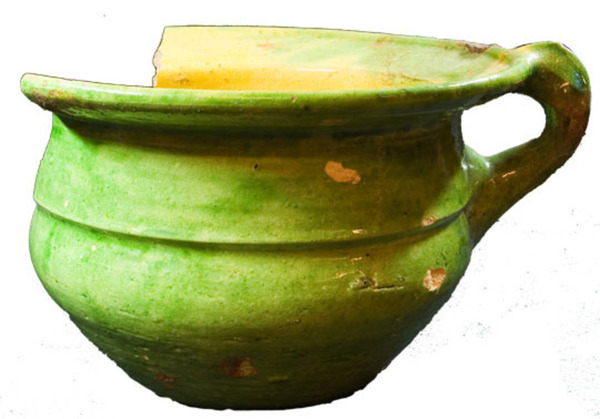 | 4b vorm | steilwandige pispot met buikknik met ribbel, naar buiten geknikte rand, holle bodem |