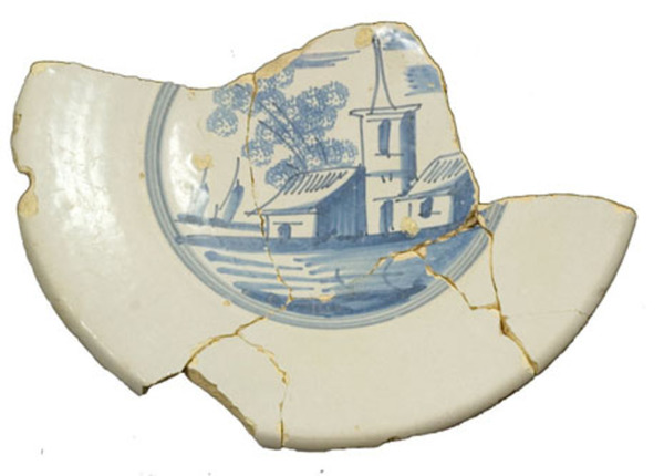 | 5c | spiegel: landschap met kerk en scheepjes in blauw inwendig: blauw |