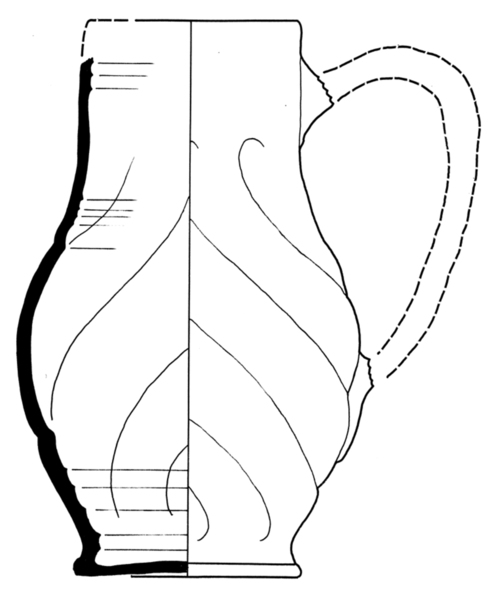 | 4b | wijdmondige kan met buik geleidelijk overgaand in cilindrische hals, verticaal oor, standvoet |