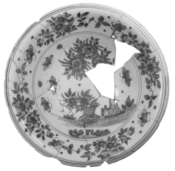 | 5c | spiegel: bloemenvazen, vlag: bloemmotieven, alles in blauw inwendig: blauw |