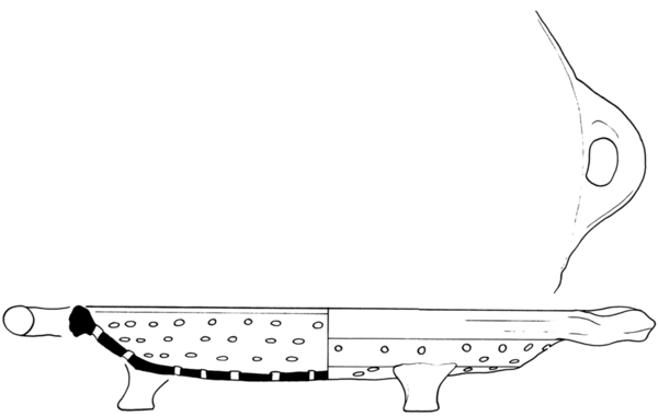 | 4b | platte lekschaal met geribbelde kraagrand, poten |