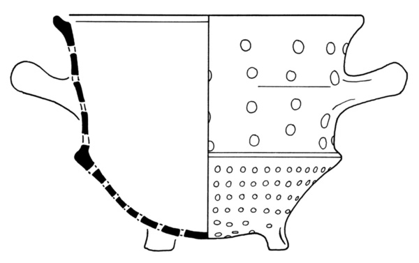 | 4b | diep vergiet met knik bodem-wand en hoge zijwand met afgeplatte rand, poten |