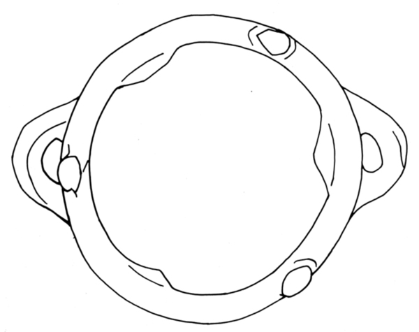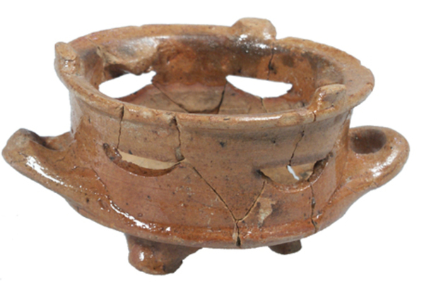 | 4b | komfoor met scherpe knik bodem-wand, naar buiten geknikte rand, uitgesneden luchtgaten en 'poten' op rand, poten |