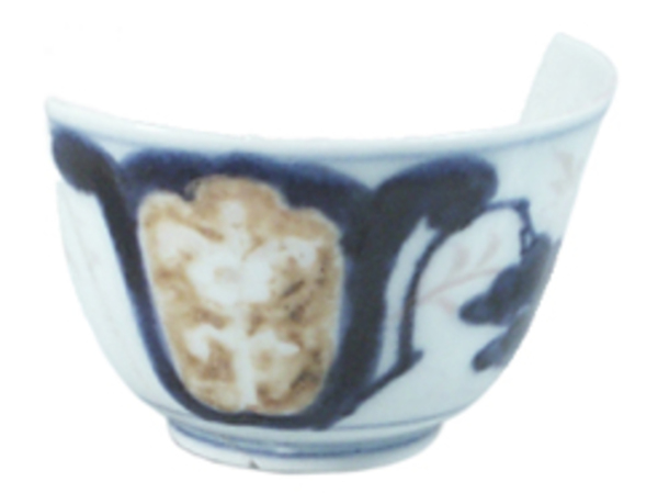 | 5c | onderglazuur blauw, bovenglazuur goud en rood; inw: tekens op spiegel; uitw: blauwe panelen, gevuld in rood en goud, bloemmotief polychroom |