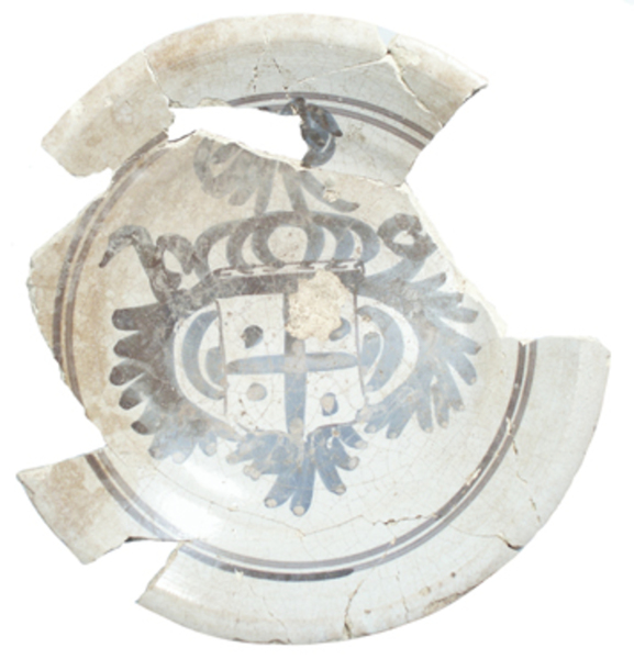 | 5c decoratie | spiegel: wapen binnen twee concentrische cirkels inwendig: blauw |