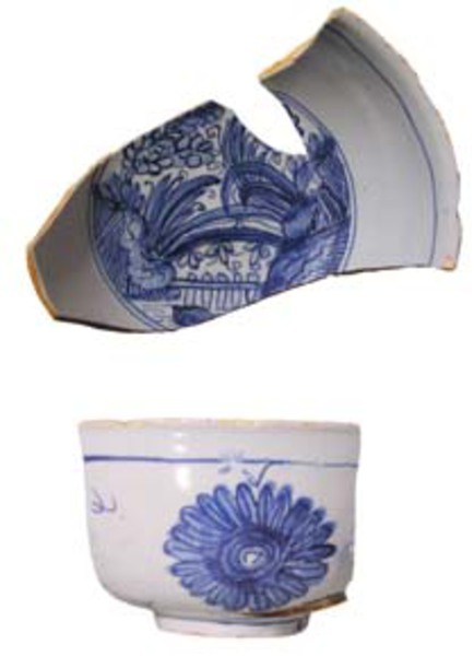 | 5c decoratie | uitwendig: aan Chinees porselein ontleend chrysant-motief; inwendig: tuin blauw |