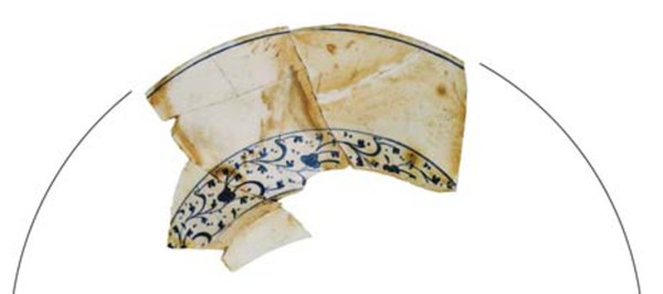 | 5c | voorzijde: fijn geschilderd spiraalmotief (zogenaamd 'Golden-Horn'-decor); op achterzijde: band met 'alla porcellana'-decor blauw |