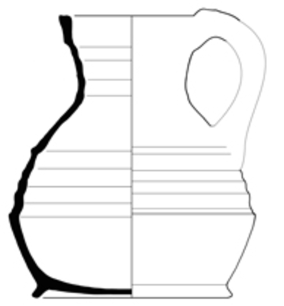 | 4b vorm | zeer bolle kan met trechtervormige hals en manchetrand, met en zonder ribbels op buik en schouder, geknepen standring |