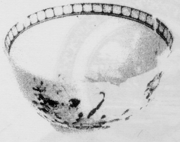 | 5d | bovenglazuur paars, roze en bruin (Amsterdams Bont?): uitwendig: bloemen; inwendig: rand in vakverdeling |