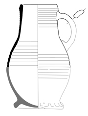 | 4b | wijdmondige kan met licht gewelfde buik, vage knik op halsaanzet met rechte rand, op standring |